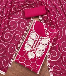Magenta chanderi silk embroidered dress material unstitched