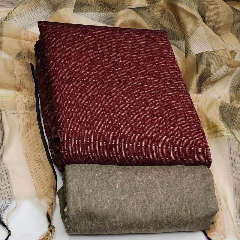 Maroon cotton woven dress material unstitched
