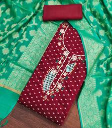 Maroon cotton woven dress material unstitched