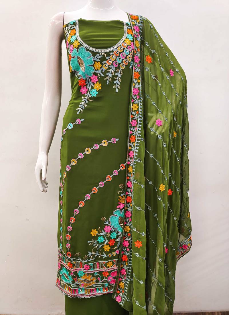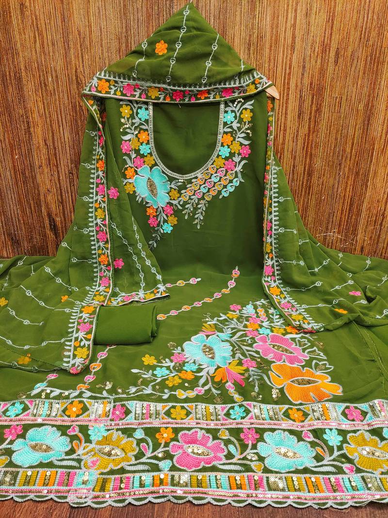 Mehendi georgette embroidered dress material unstitched