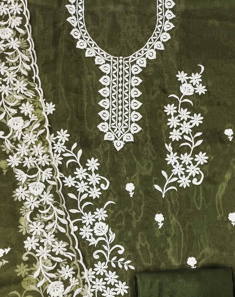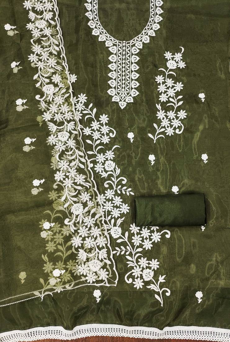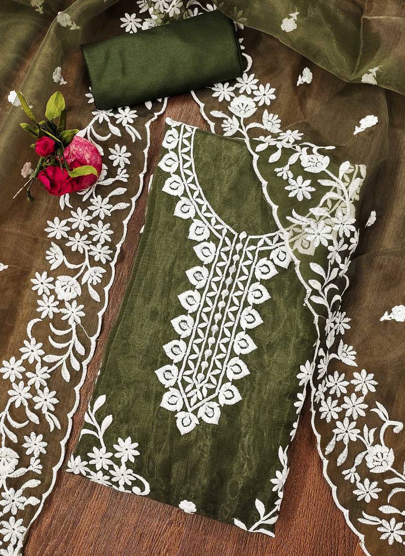 Mehendi organza embroidered dress material unstitched