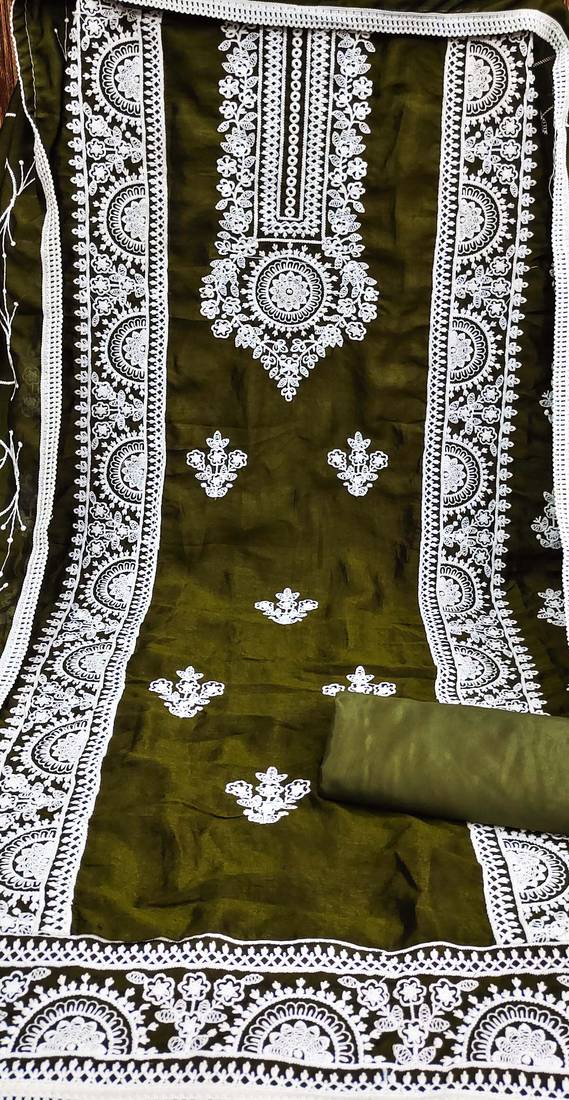 | Product Description | Heavy Thread Embroidery And Fancy Border With Embroidered Dupatta Straight Style 1.80 Mtr Unstitched Dress Material Top Of Mehandi Colour Silk Fabric With 2 Mtr Santoon As Lining Inner Fabric Also Including 2.00 Mtr Unstitched Bottom Material Of Mehandi Colour Santoon Fabric With 2.00 Mtr Dupatta Of Mehandi Colour Silk Fabric |