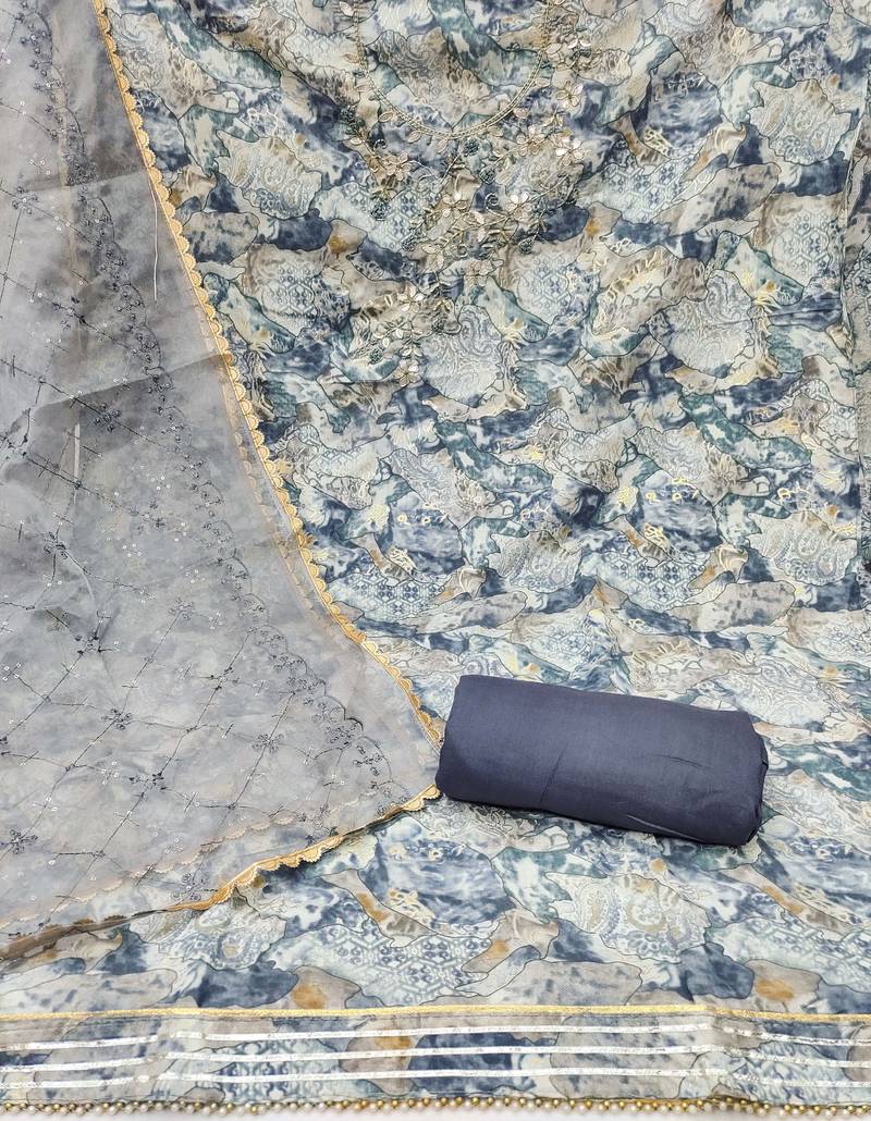 | Product Description | Digital Print Handwork And Border With Fancy Embroidered Dupatta Straight Style 2.00 Mtr Unstitched Dress Material Top Of Multi Colour P V Roman Fabric Also Including 2.40 Mtr Chudidar Style Bottom Piece Material Of Grey Colour Rayon Fabric With 2.00 Mtr Dupatta Of Grey Colour Organza Fabric |