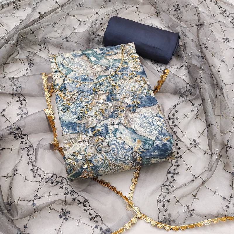| • | Dupatta | : | Color- Grey / Fabric- Organza |