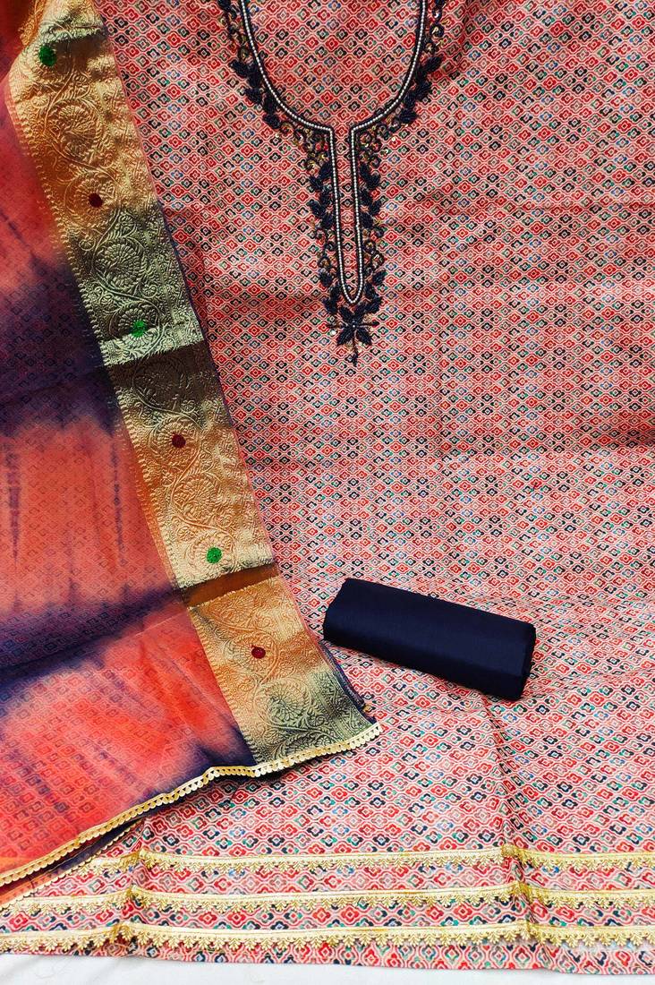 Multicolor cotton embroidered dress material unstitched