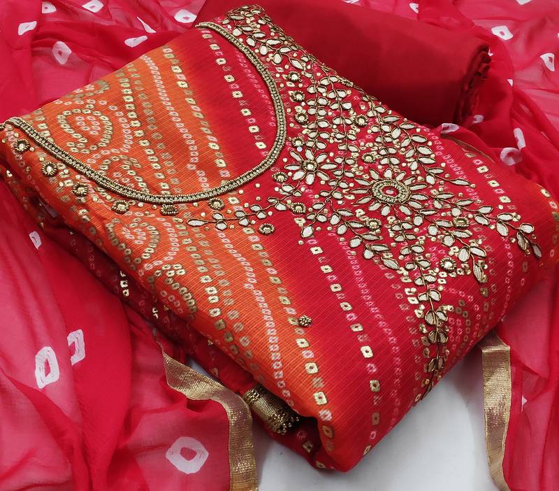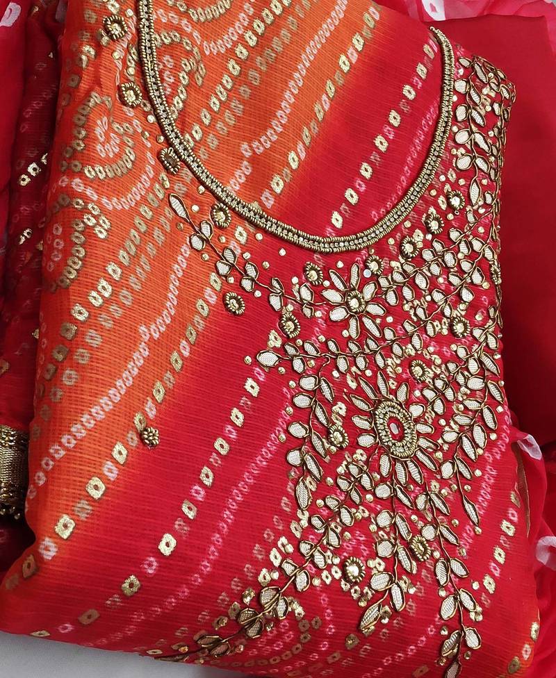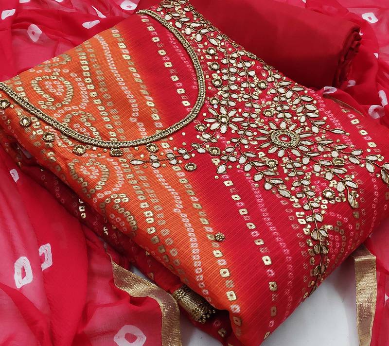 | Product Description | Beautifull Fancy Hand Work With Bandhani Print Dupatta Straight Style 2.00 Mtr Unstitched Dress Material Top Of Multi Colour Colour Cotton Jacquard Fabric Suggestable Quarter Style Sleeves And Round Style Neck Also Including 2.10 Mtr Chudidar Style Bottom Piece Material Of Pink Colour Santoon Fabric With 2.00 Mtr Dupatta Of Pink Colour Nazneen Fabric |