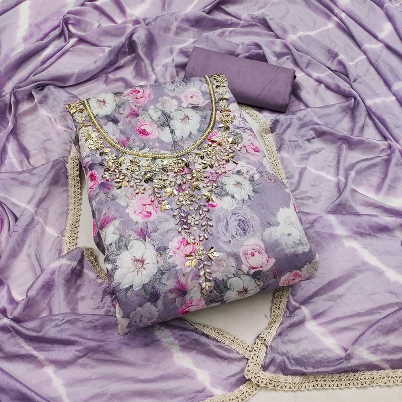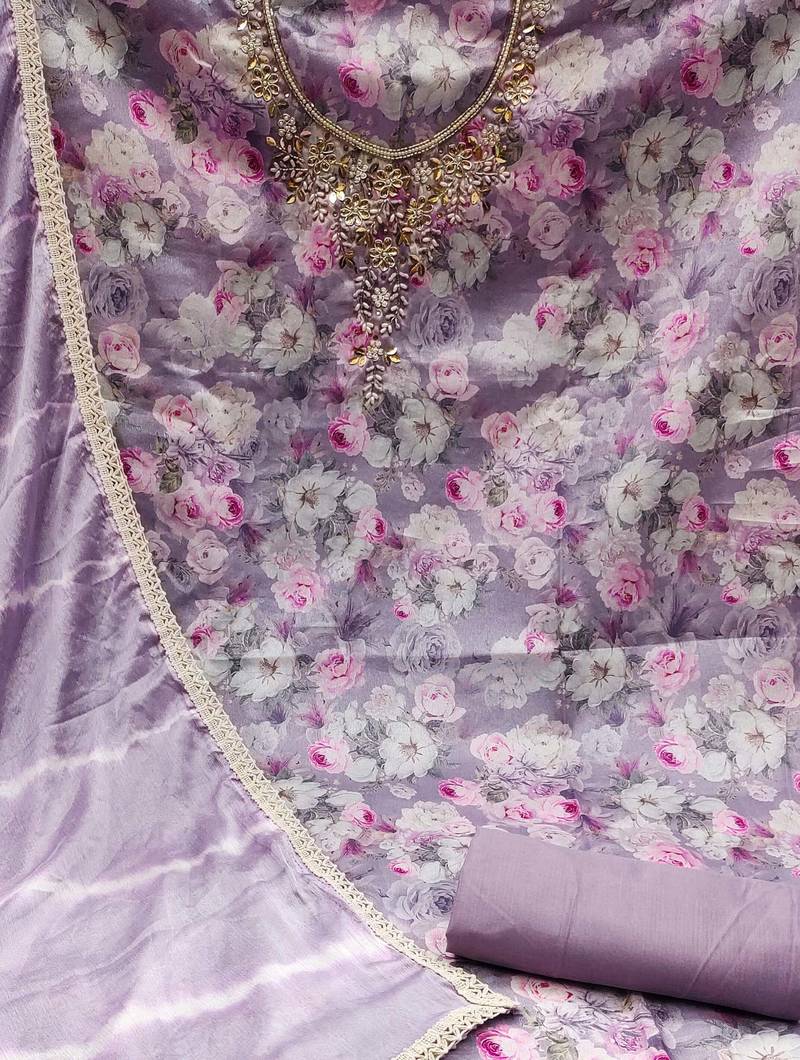 | Product Description | Fancy Digital Print Work With Hand Work And Border With Printed Dupatta Work Straight Style 2.00 Mtr Unstitched Dress Material Top Of Multi Colour Maslin Cotton Fabric With 2 Mtr Dull Santoon As Lining Inner Fabric Also Including 3.60 Mtr Unstitched Bottom Material Of Purple Colour Dull Santoon Fabric With 2.05 Mtr Dupatta Of Purple Colour Nazneen Fabric |