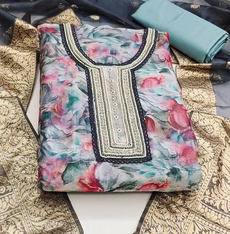 | Product Name | Multicolor Organza Hand Embroidery Dress Material | |