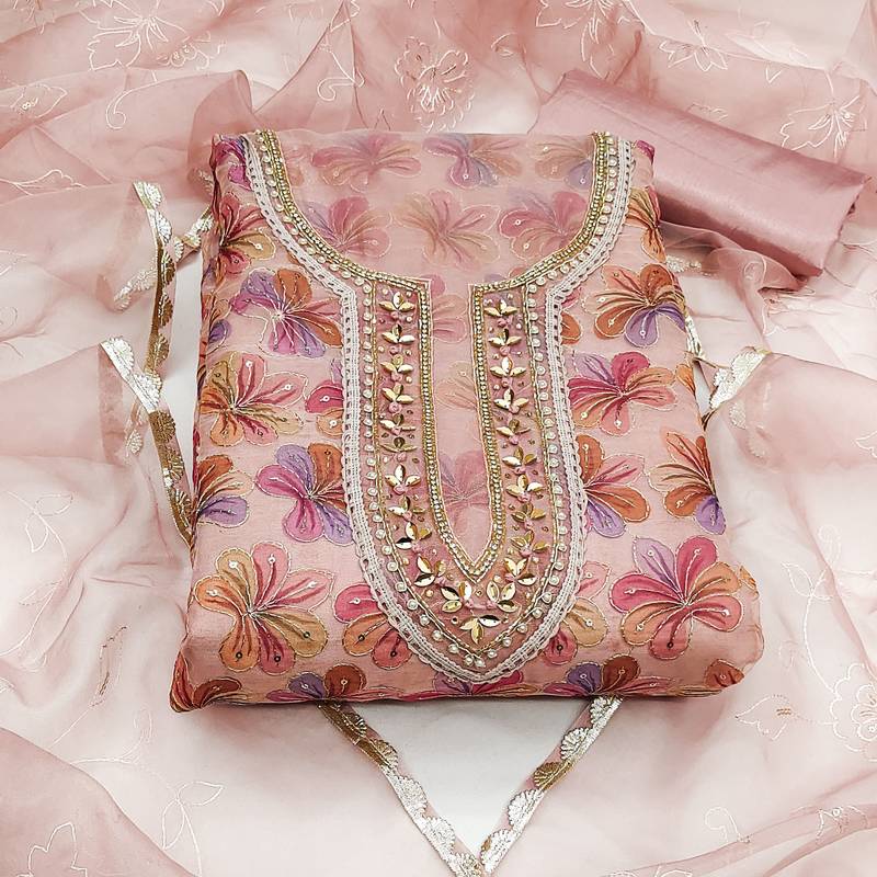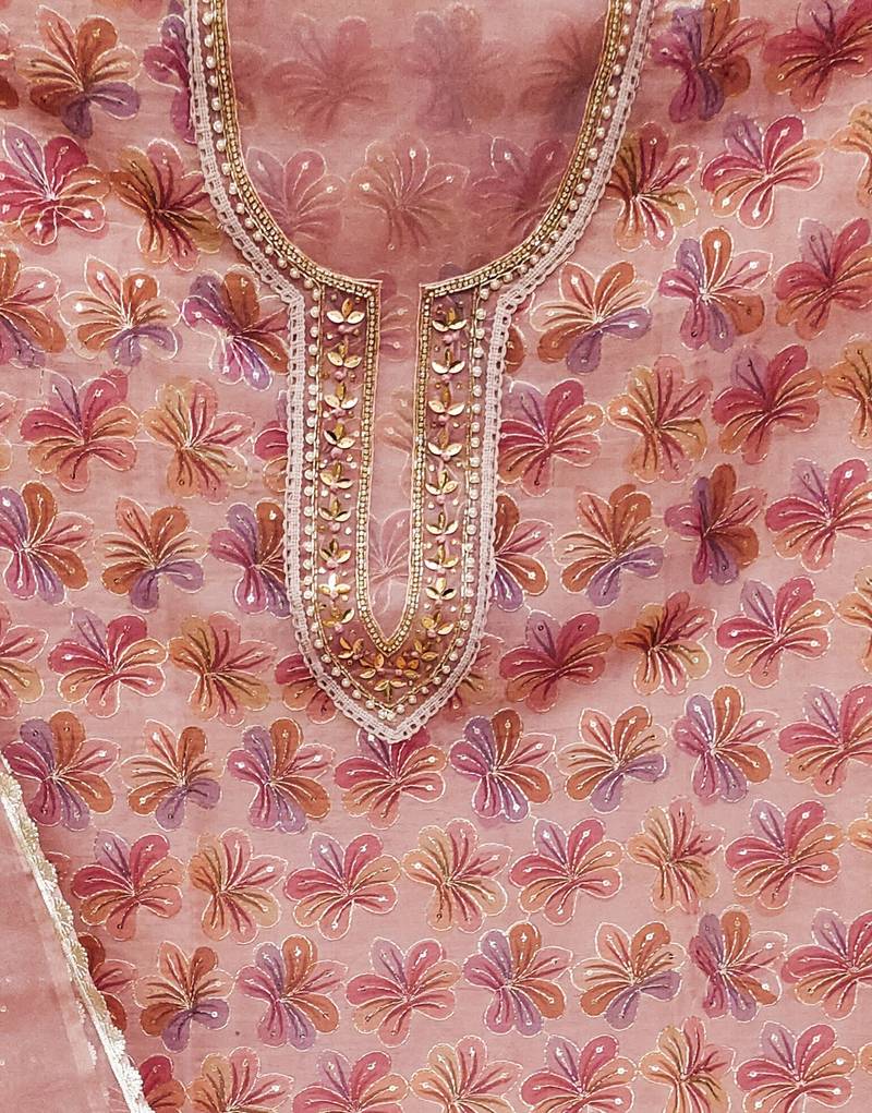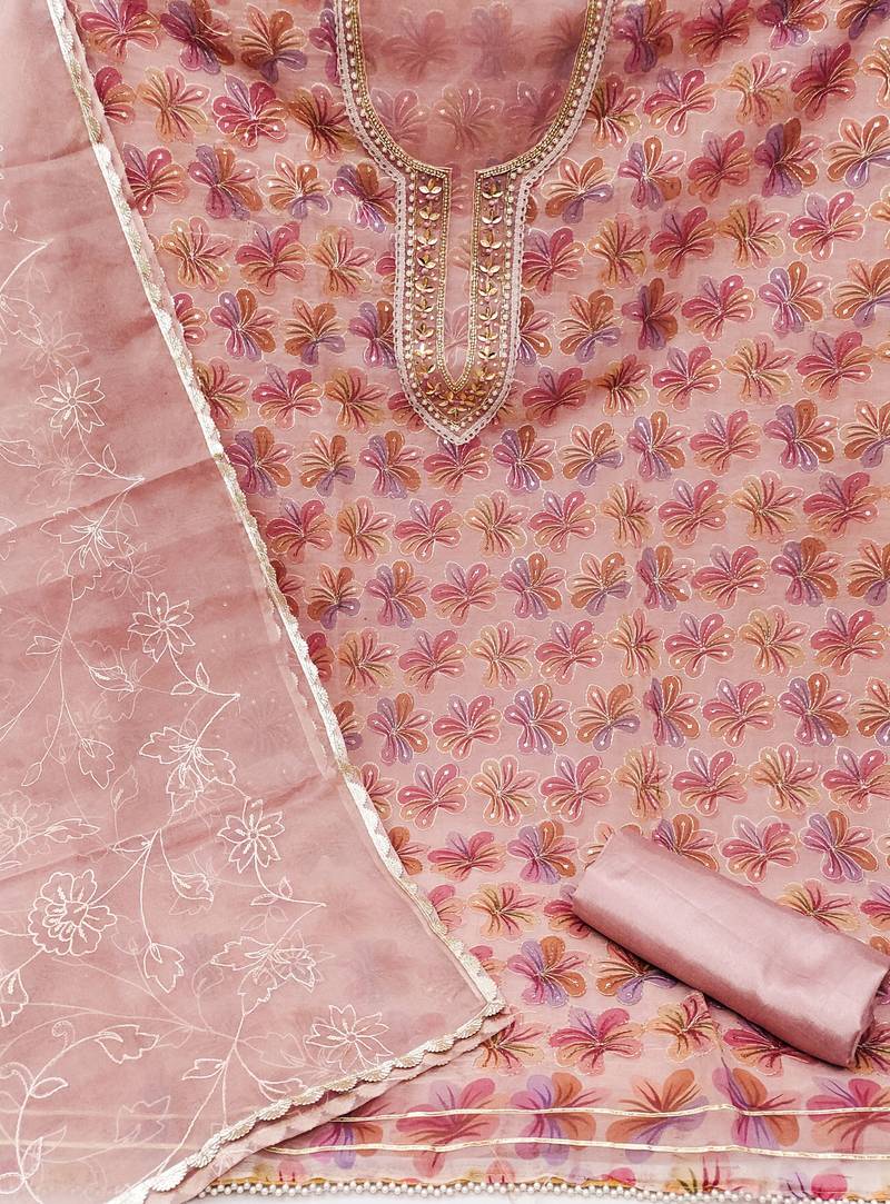 Multicolor organza sequins dress material unstitched