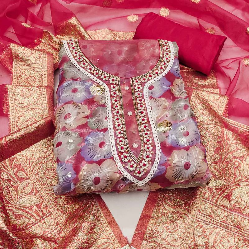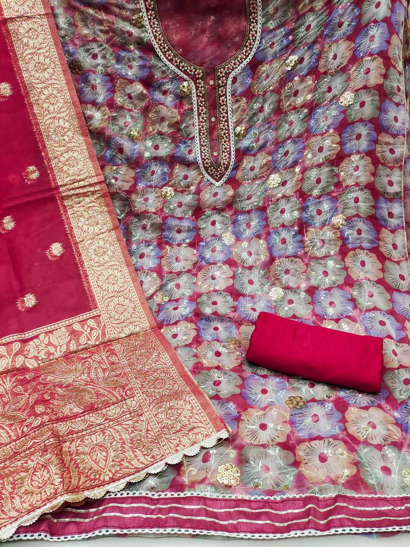 Multicolor organza sequins dress material unstitched