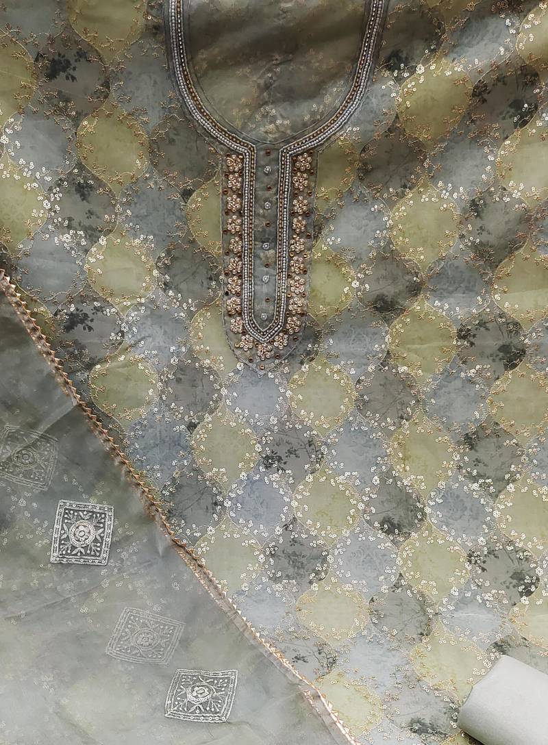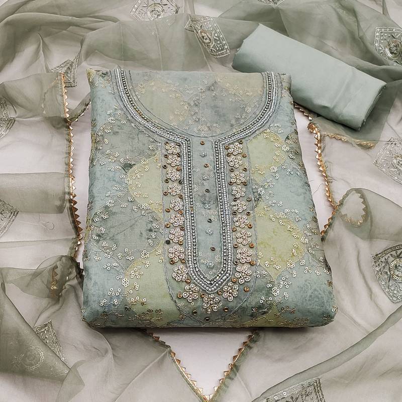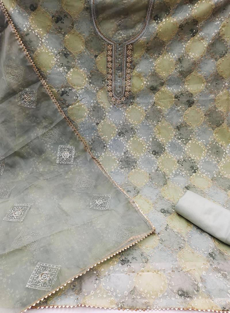 Multicolor organza sequins dress material unstitched