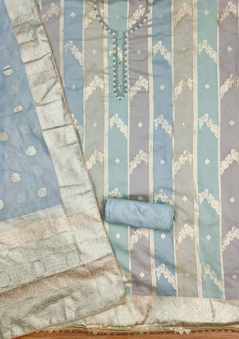 | Product Description | Jari Weaving Work With Hand Work And Fancy Jari Weaving Dupatta Work Straight Style 2.00 Mtr Unstitched Dress Material Top Of Multi Colour Banarasi Jacquard Fabric With 2 Mtr Heavy Santoon As Lining Inner Fabric Also Including 4.00 Mtr Unstitched Bottom Material Of Grey Colour Heavy Santoon Fabric With 2.25 Mtr Dupatta Of Grey Colour Banarasi Jacquard Fabric |