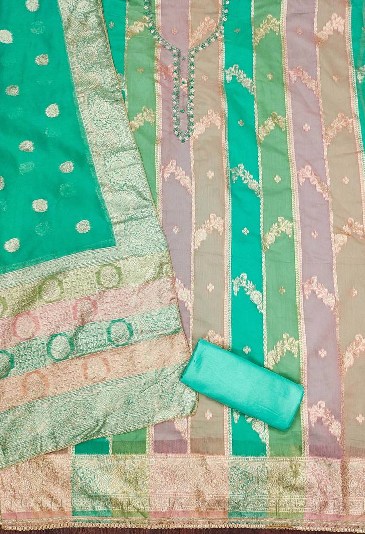 | Product Description | Jari Weaving Work With Hand Work And Fancy Jari Weaving Dupatta Work Straight Style 2.00 Mtr Unstitched Dress Material Top Of Multi Colour Banarasi Jacquard Fabric With 2 Mtr Heavy Santoon As Lining Inner Fabric Also Including 4.00 Mtr Unstitched Bottom Material Of Sea Green Colour Heavy Santoon Fabric With 2.25 Mtr Dupatta Of Sea Green Colour Banarasi Jacquard Fabric |