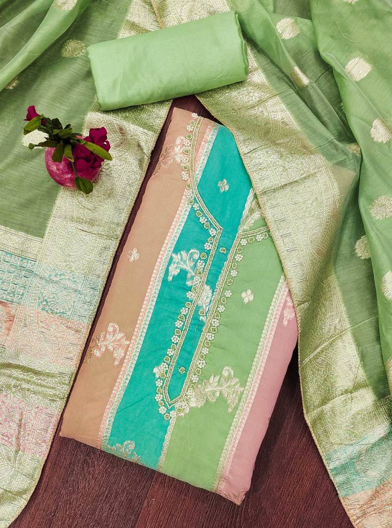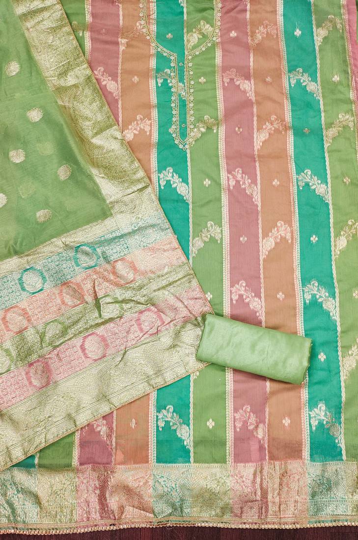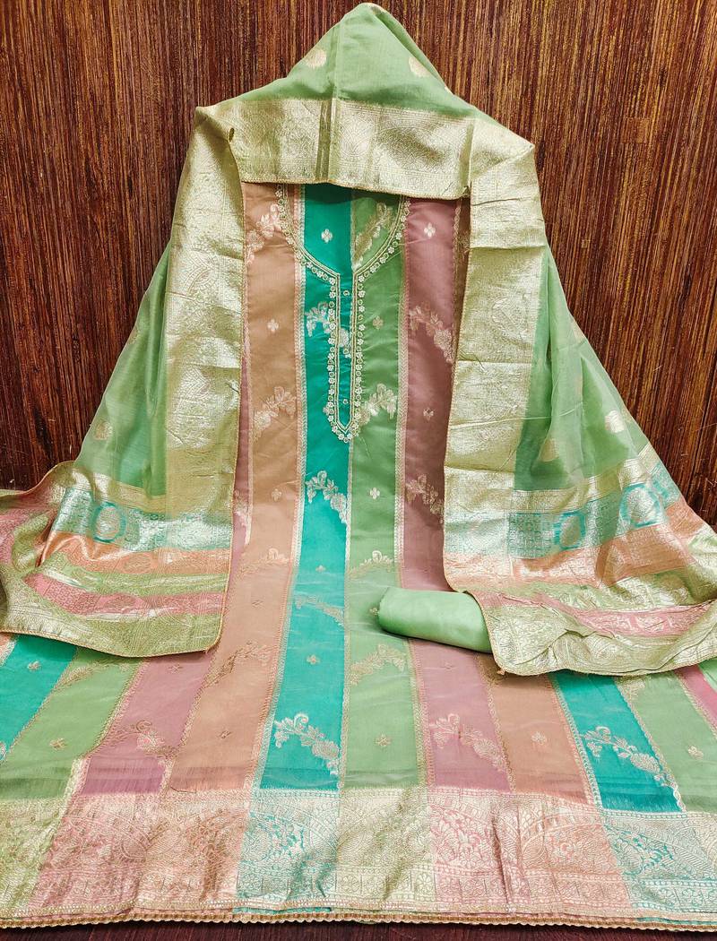 | Product Description | Jari Weaving Work With Hand Work And Fancy Jari Weaving Dupatta Work Straight Style 2.00 Mtr Unstitched Dress Material Top Of Multi Colour Banarasi Jacquard Fabric With 2 Mtr Heavy Santoon As Lining Inner Fabric Also Including 4.00 Mtr Unstitched Bottom Material Of Pista Green Colour Heavy Santoon Fabric With 2.25 Mtr Dupatta Of Pista Green Colour Banarasi Jacquard Fabric |