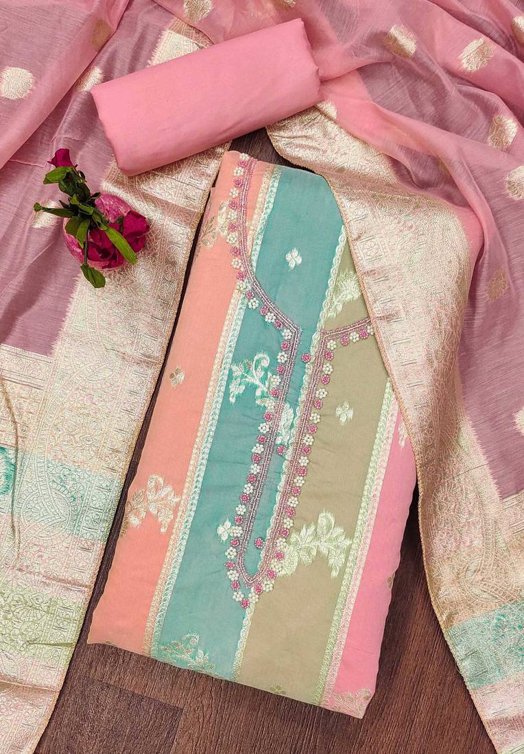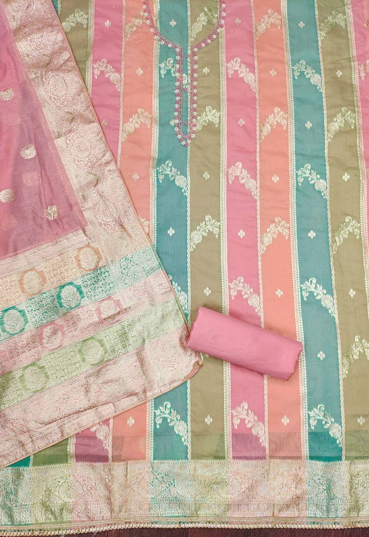 | Product Description | Jari Weaving Work With Hand Work And Fancy Jari Weaving Dupatta Work Straight Style 2.00 Mtr Unstitched Dress Material Top Of Multi Colour Banarasi Jacquard Fabric With 2 Mtr Heavy Santoon As Lining Inner Fabric Also Including 4.00 Mtr Unstitched Bottom Material Of Pink Colour Heavy Santoon Fabric With 2.25 Mtr Dupatta Of Pink Colour Banarasi Jacquard Fabric |