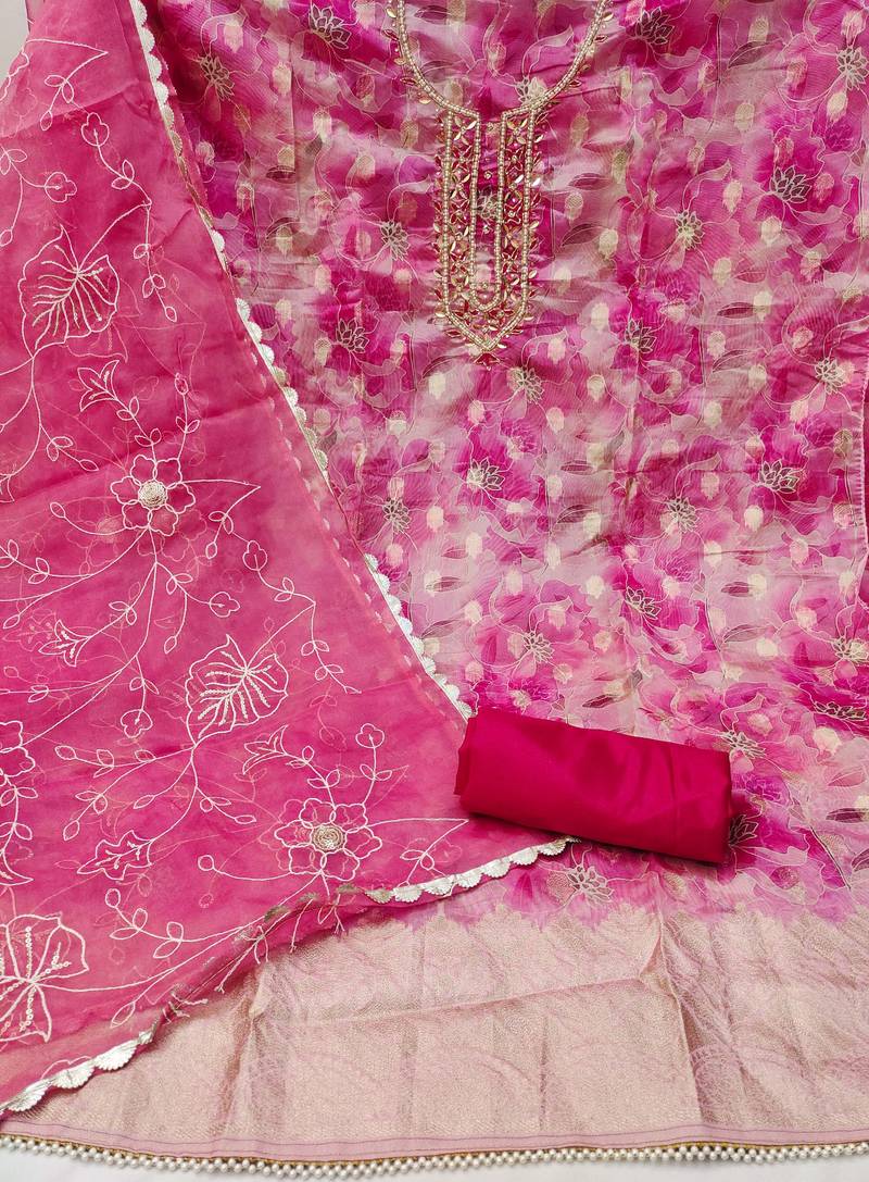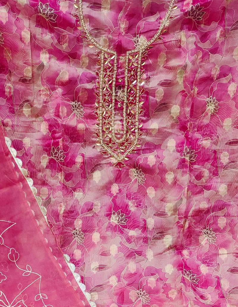 Multicolor organza woven dress material unstitched