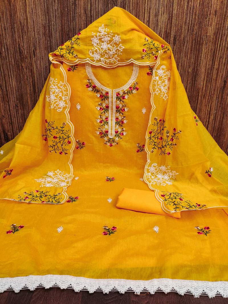 | Product Description | Heavy Thread Multi Embroidery And Fancy Border With Embroidered Dupatta Work Straight Style 2.00 Mtr Unstitched Dress Material Top Of Mustard Colour Chanderi Cotton Fabric With 2 Mtr Creap As Lining Inner Fabric Also Including 3.80 Mtr Unstitched Bottom Material Of Mustard Colour Creap Fabric With 2.15 Mtr Dupatta Of Mustard Colour Chanderi Cotton Fabric |