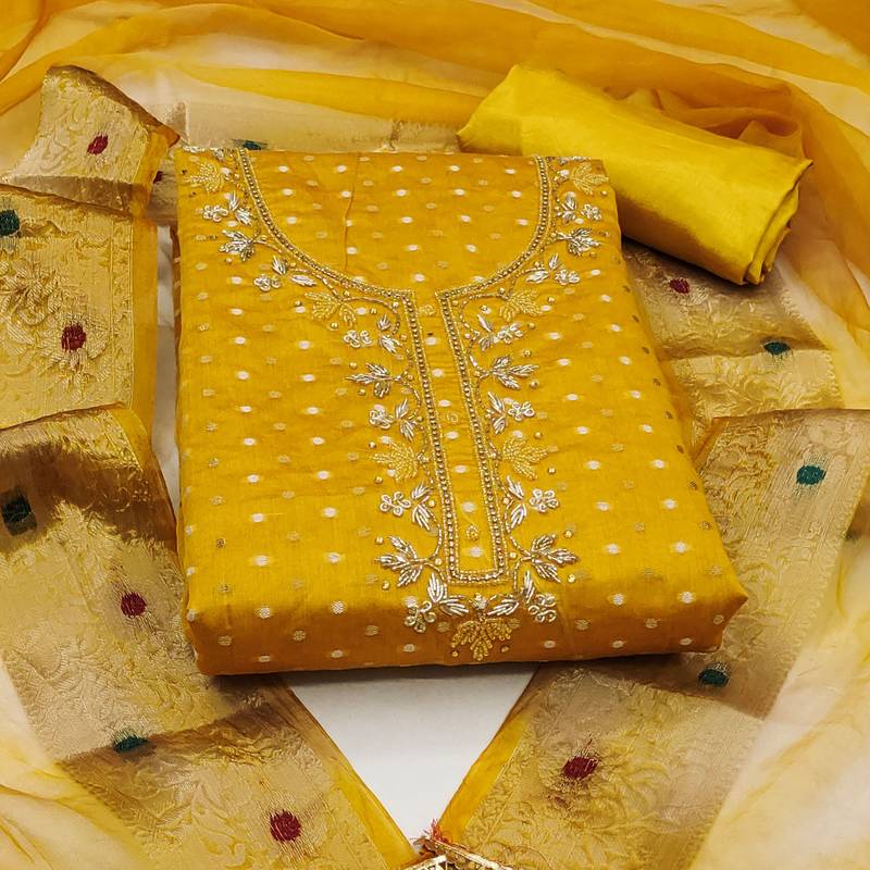 | Product Name | Mustard Cotton Hand Embroidery Dress Material | |