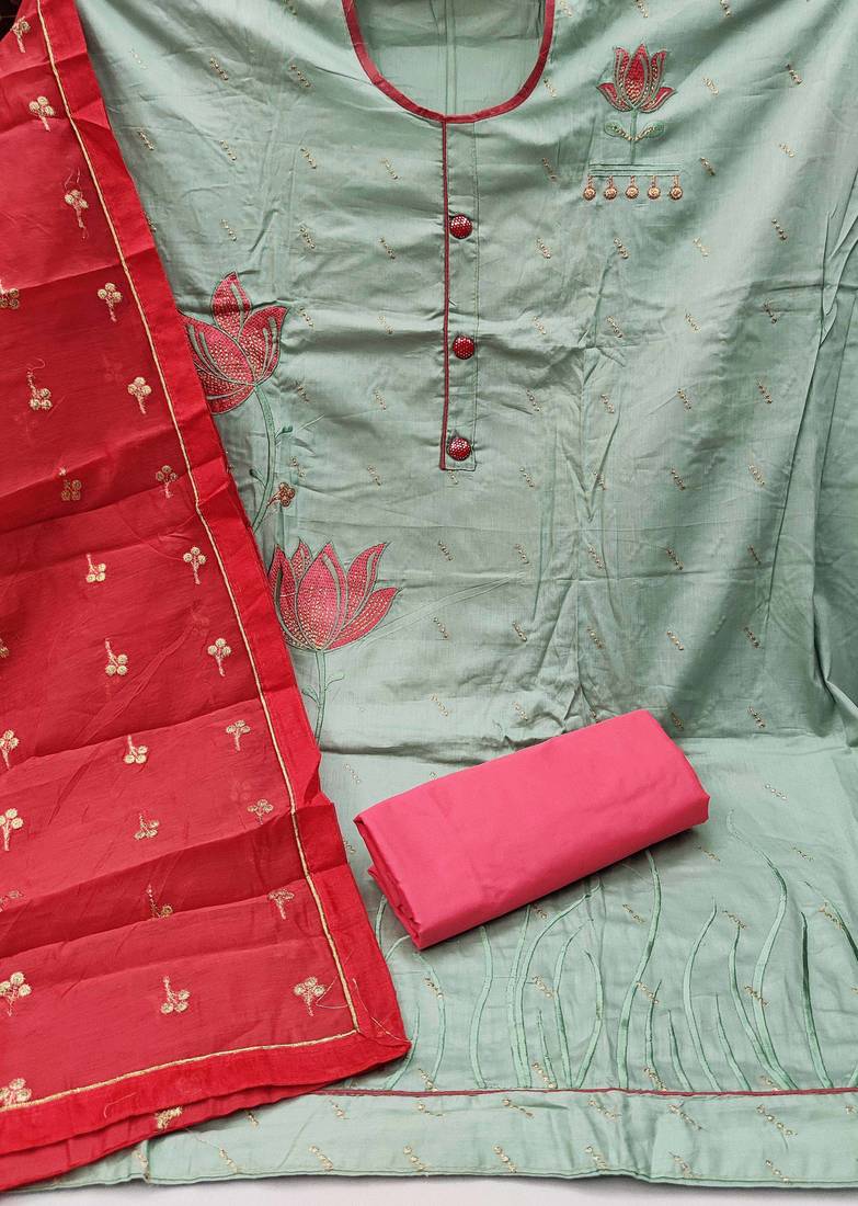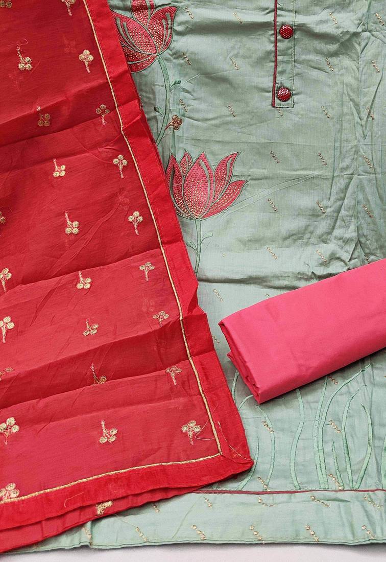 | Product Name | Olive Chanderi Embroidered Dress Material | |