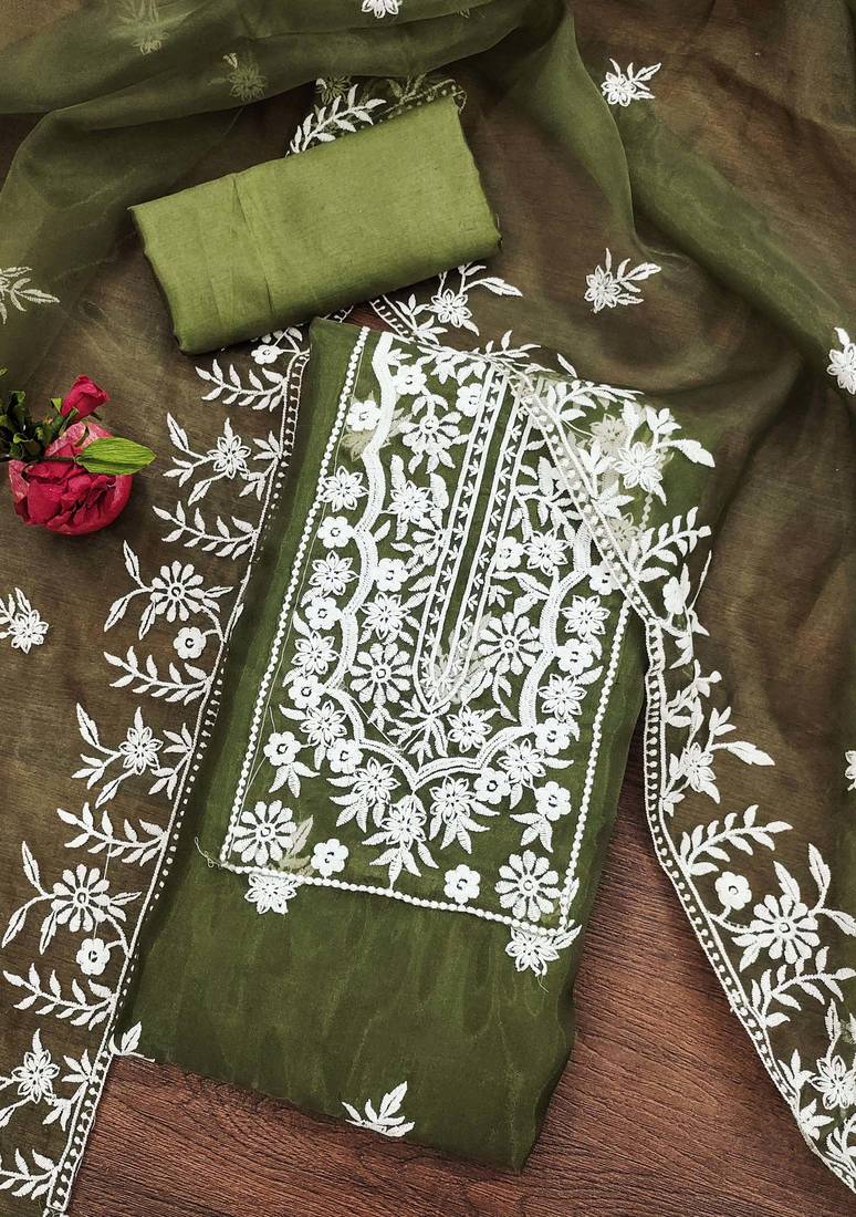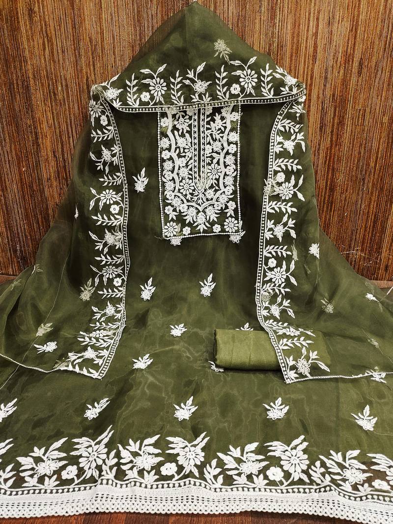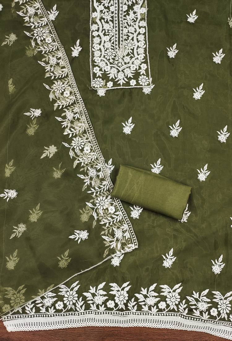 | Product Name | Olive Organza Embroidered Dress Material | |