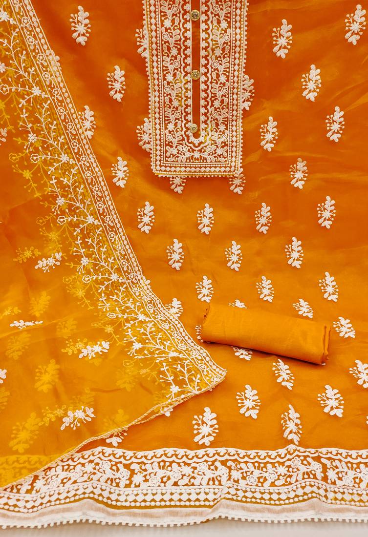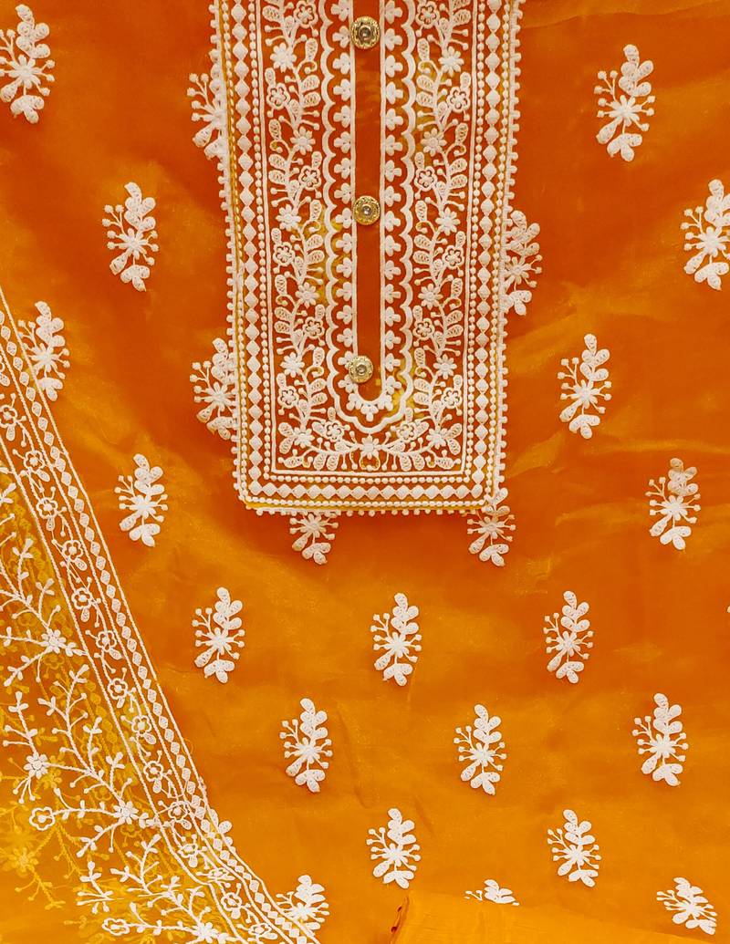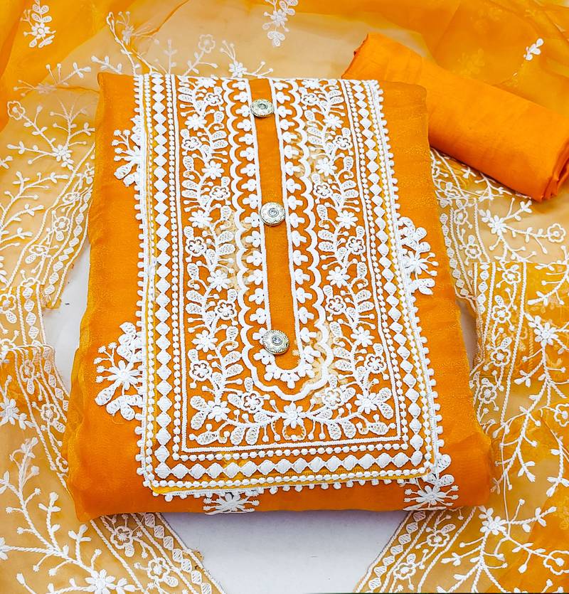 | Product Name | Orange Organza Embroidered Dress Material | |