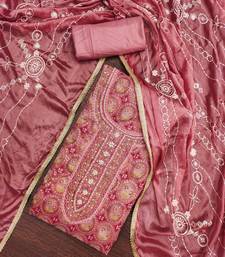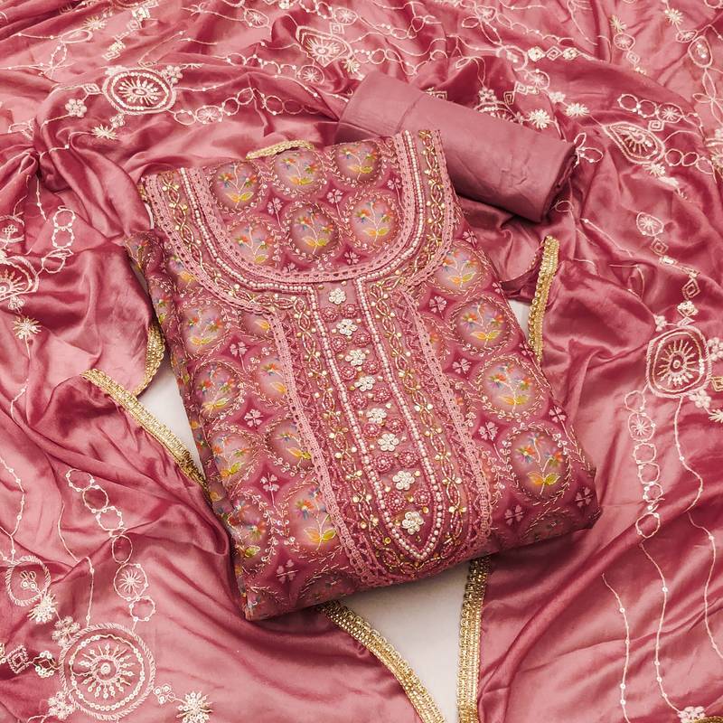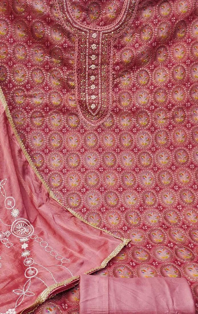 Orange organza embroidered dress material unstitched