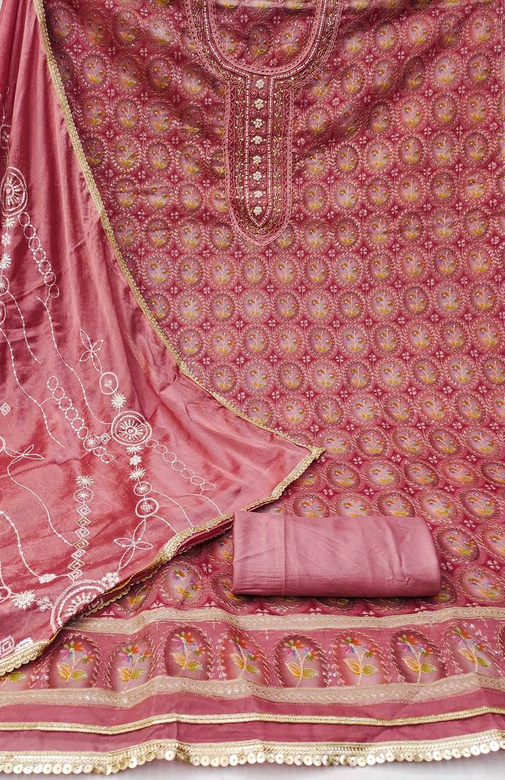 | Product Description | Fancy Heavy Position Print Embroidery With Hand Work Neck And Fancy Sequin Work With Embroidered Dupatta Work Straight Style 2.00 Mtr Unstitched Dress Material Top Of Rust Colour Viscos Organza Fabric With 2 Mtr Dull Santoon As Lining Inner Fabric Also Including 3.60 Mtr Unstitched Bottom Material Of Rust Colour Dull Santoon Fabric With 2.05 Mtr Dupatta Of Rust Colour Organza Fabric |