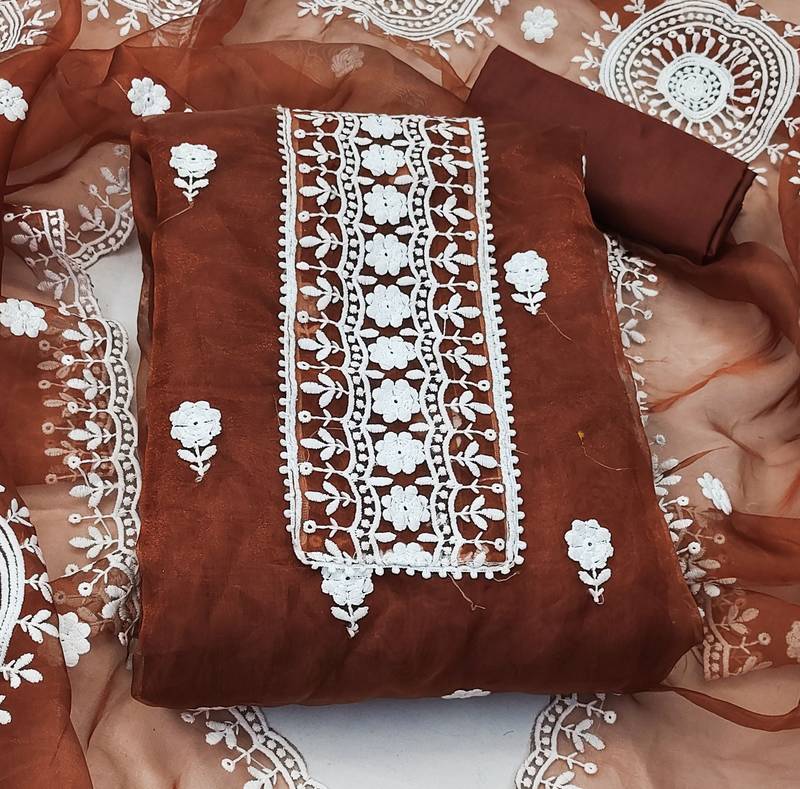 | Product Name | Orange Organza Embroidered Dress Material | |