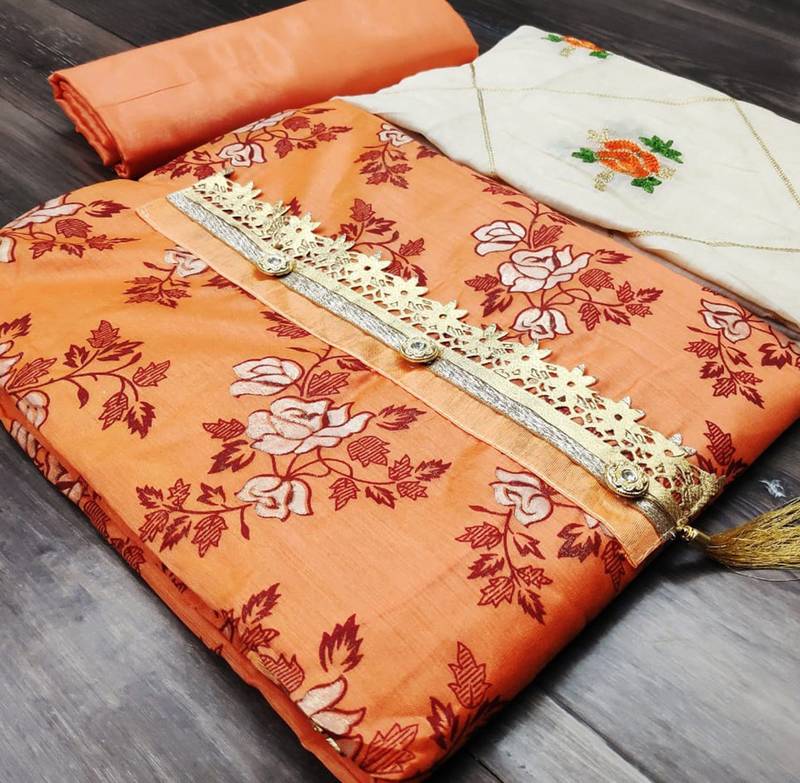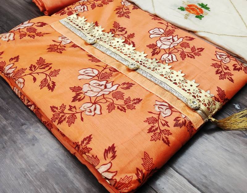 | Product Name | Peach Chanderi Embroidered Dress Material | |