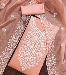Peach cotton embroidered dress material unstitched