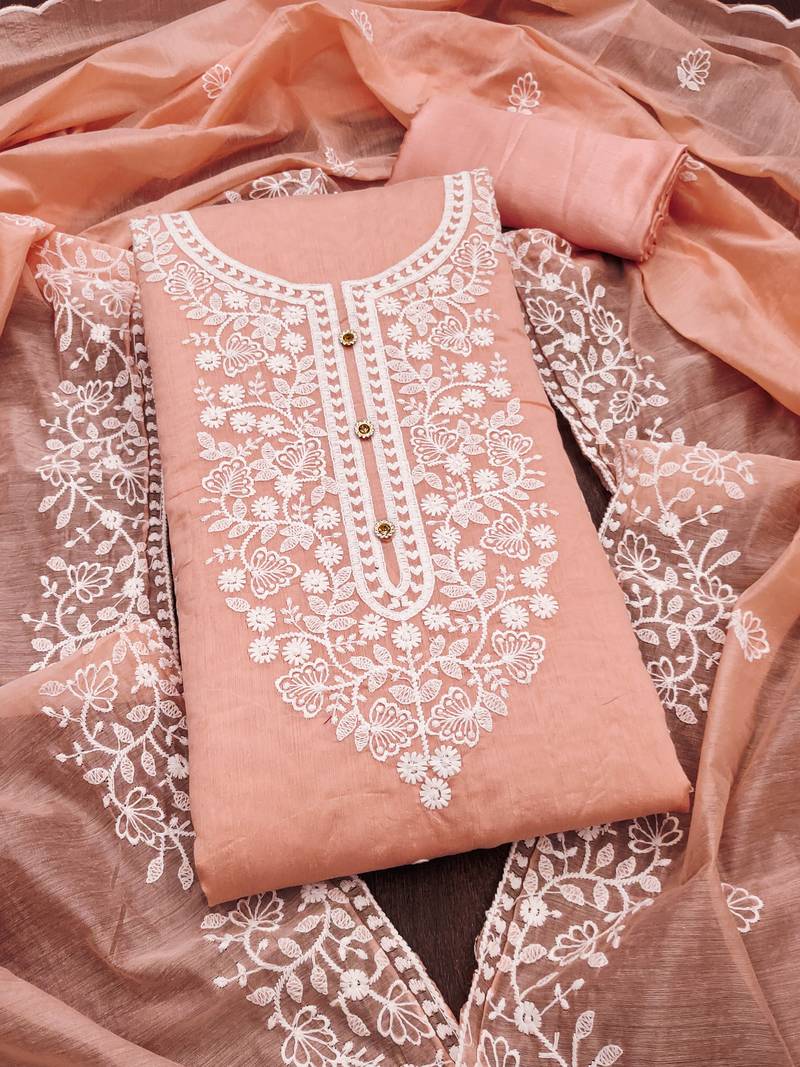 | Product Name | Peach Cotton Embroidered Dress Material | |