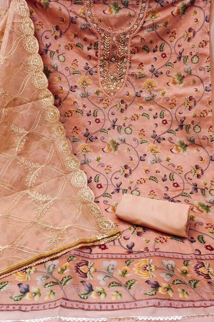 | Product Name | Peach Organza Embroidered Dress Material | |