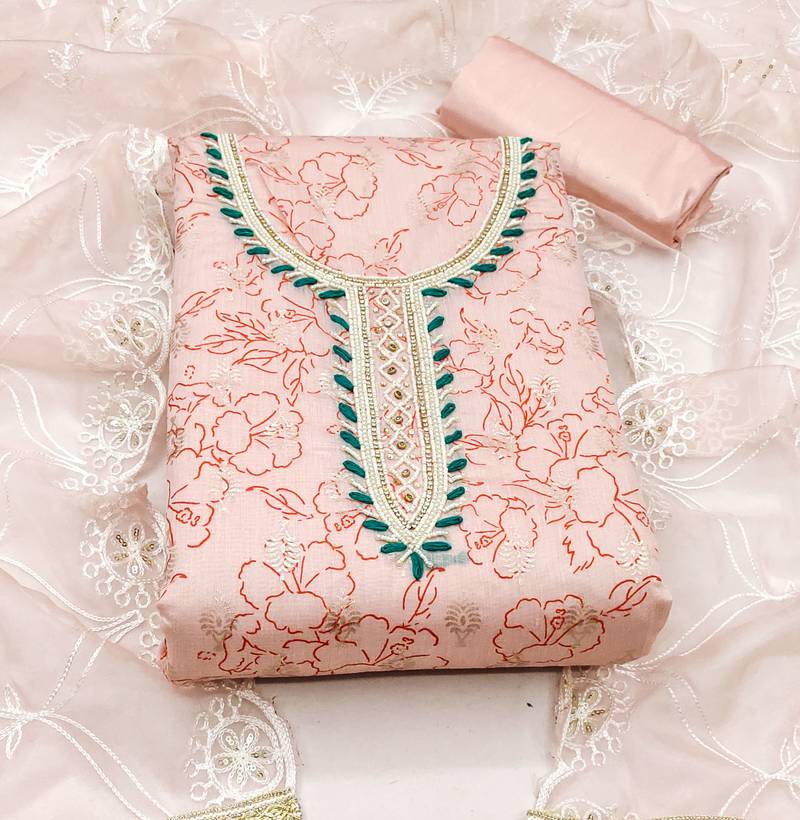 | Product Name | Peach Cotton Hand Embroidery Dress Material | |