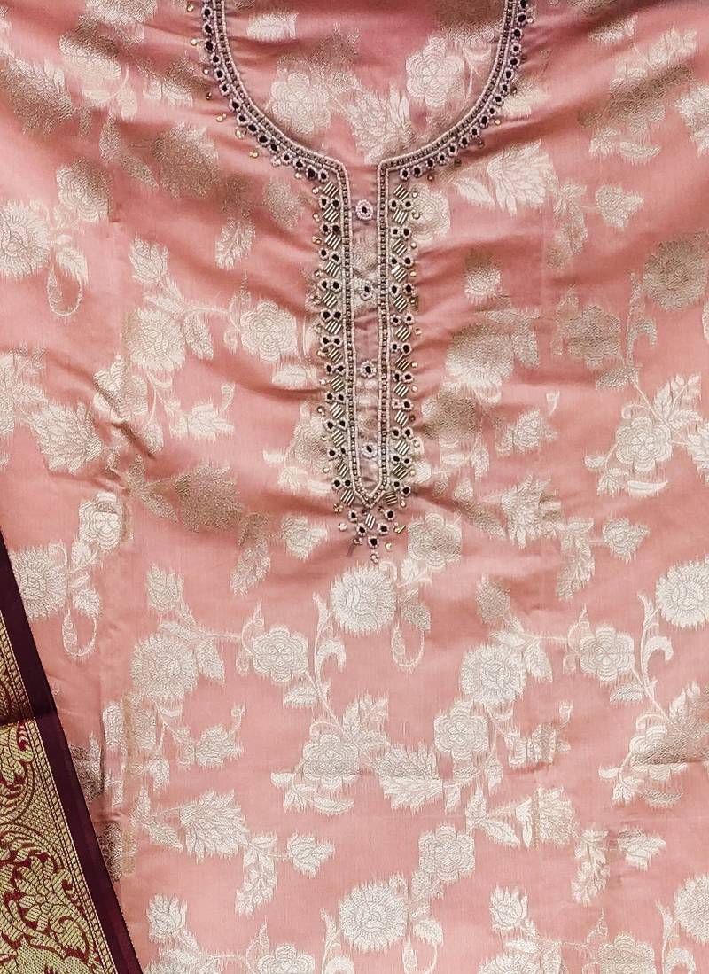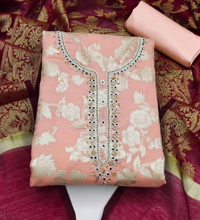 | Product Name | Peach Jacquard Hand Embroidery Dress Material | |
