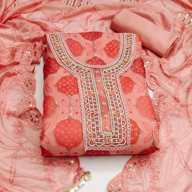 | Product Name | Peach Organza Hand Embroidery Dress Material | |