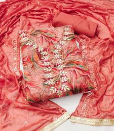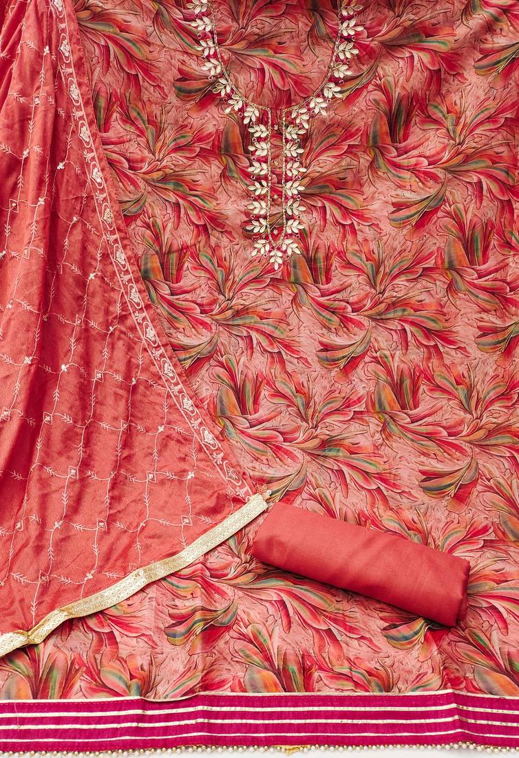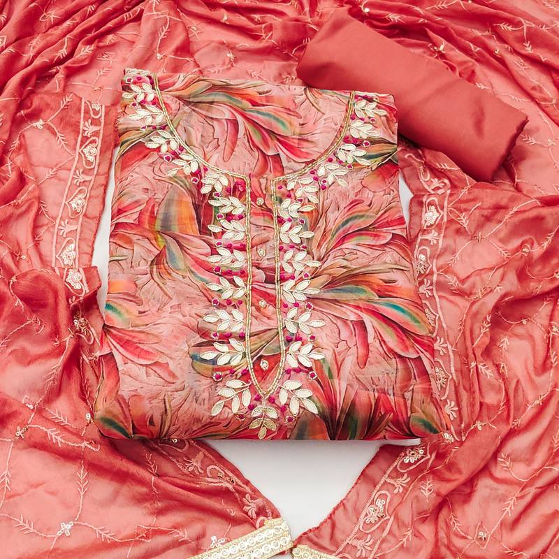 Peach organza hand embroidery dress material unstitched