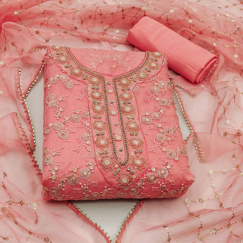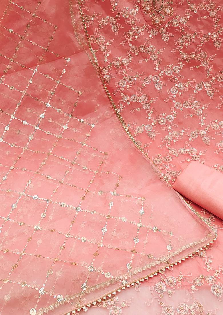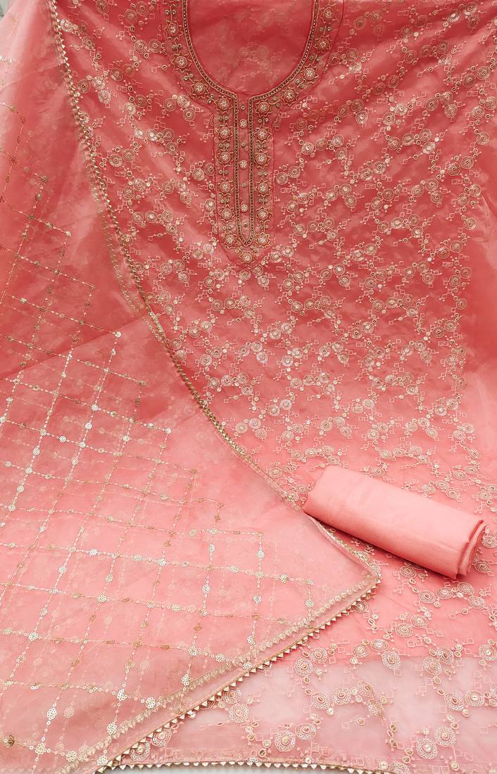 | Product Description | Sequin And Hand Work Work With Heavy Embrodiered Dupatta Work Straight Style 1.95 Mtr Unstitched Dress Material Top Of Peach Colour Pure Organza Fabric With 2 Mtr Santoon As Lining Inner Fabric Also Including 3.80 Mtr Unstitched Bottom Material Of Peach Colour Santoon Fabric With 2.05 Mtr Dupatta Of Peach Colour Organza Fabric |