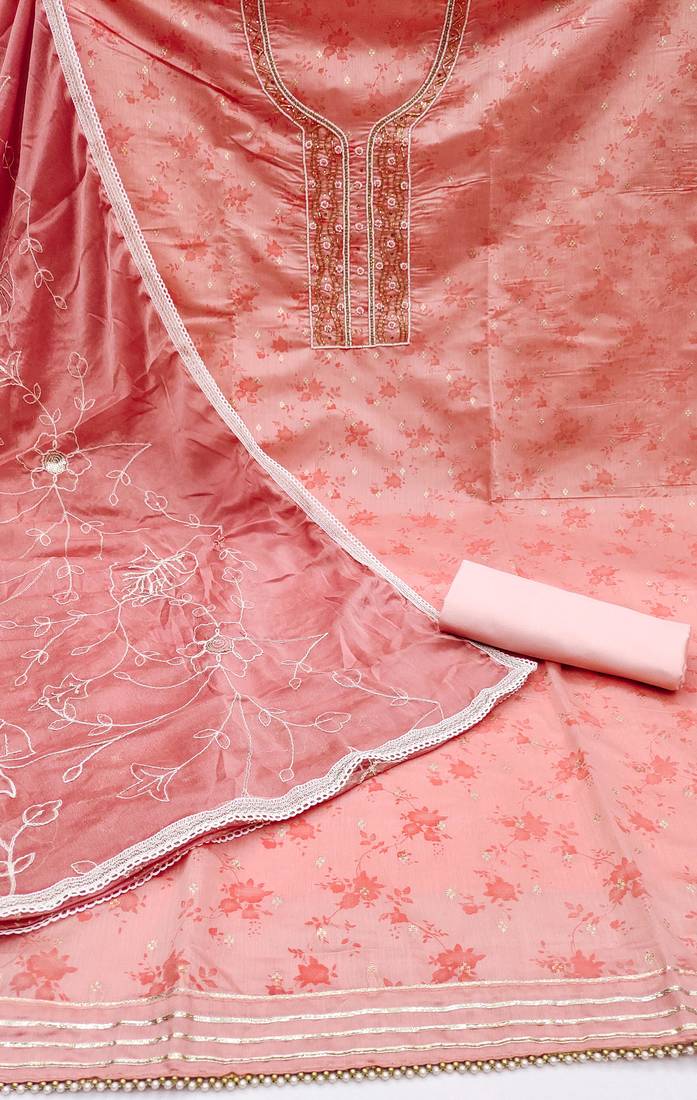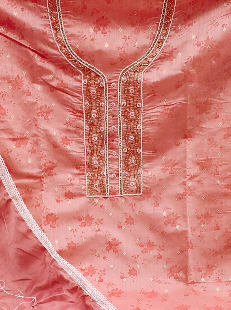 | Product Description | Handwork Digital Print And Fancy Weaving Work With Embroidery Work Dupatta Straight Style 1.95 Mtr Unstitched Dress Material Top Of Peach Colour Cotton Jacquard Fabric With 2 Mtr Heavy Santoon As Lining Inner Fabric Also Including 3.80 Mtr Unstitched Bottom Material Of Peach Colour Heavy Santoon Fabric With 2.05 Mtr Dupatta Of Peach Colour Organza Fabric |