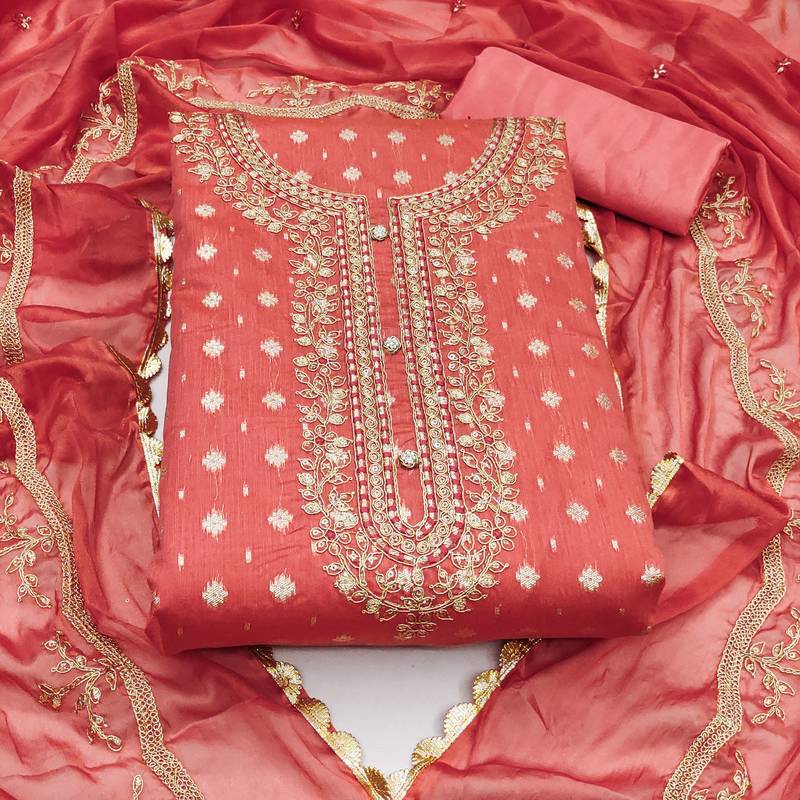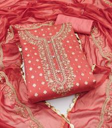 Peach cotton woven dress material unstitched