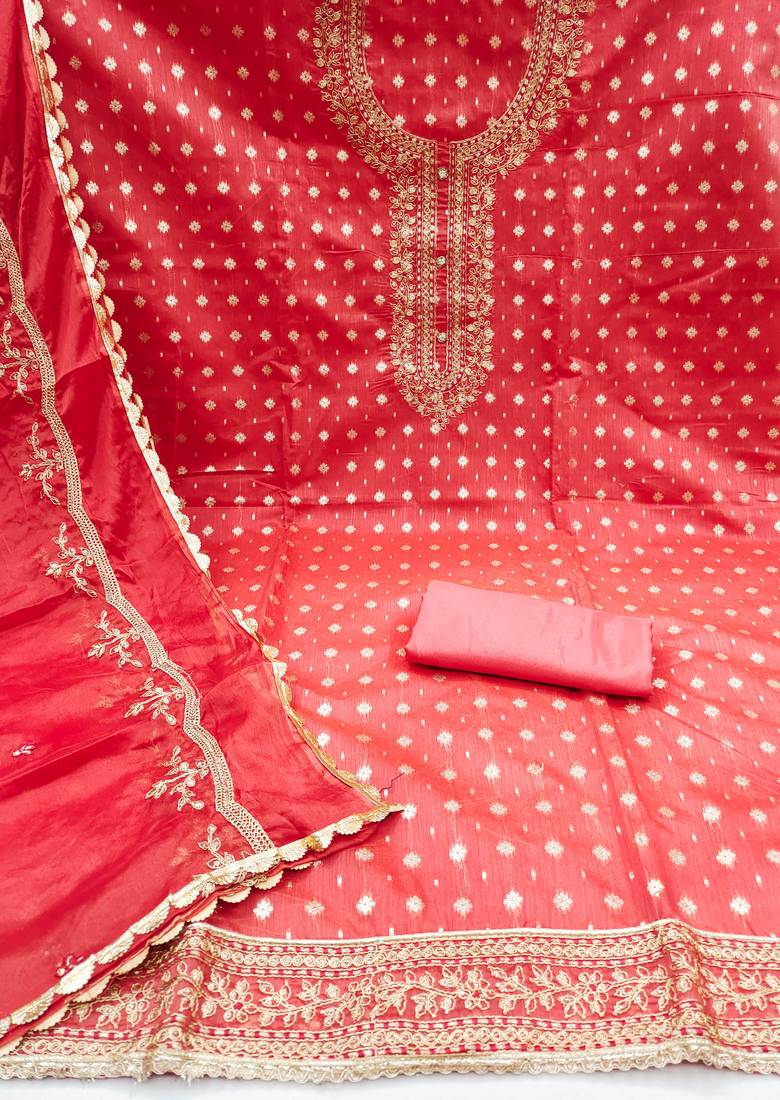 | Product Description | Weaving Fancy Handwork And Heavy Border With Dupatta Straight Style 2.00 Mtr Unstitched Dress Material Top Of Peach Colour Modal Cotton Fabric With 2 Mtr Santoon As Lining Inner Fabric Also Including 3.80 Mtr Unstitched Bottom Material Of Peach Colour Santoon Fabric With 2.00 Mtr Dupatta Of Peach Colour Nazneen Fabric |