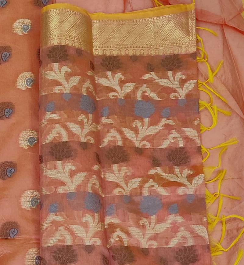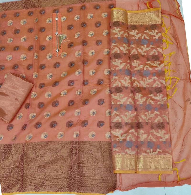 Peach jacquard woven dress material unstitched