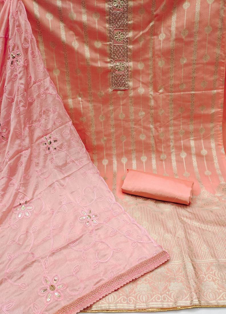 Peach jacquard woven dress material unstitched