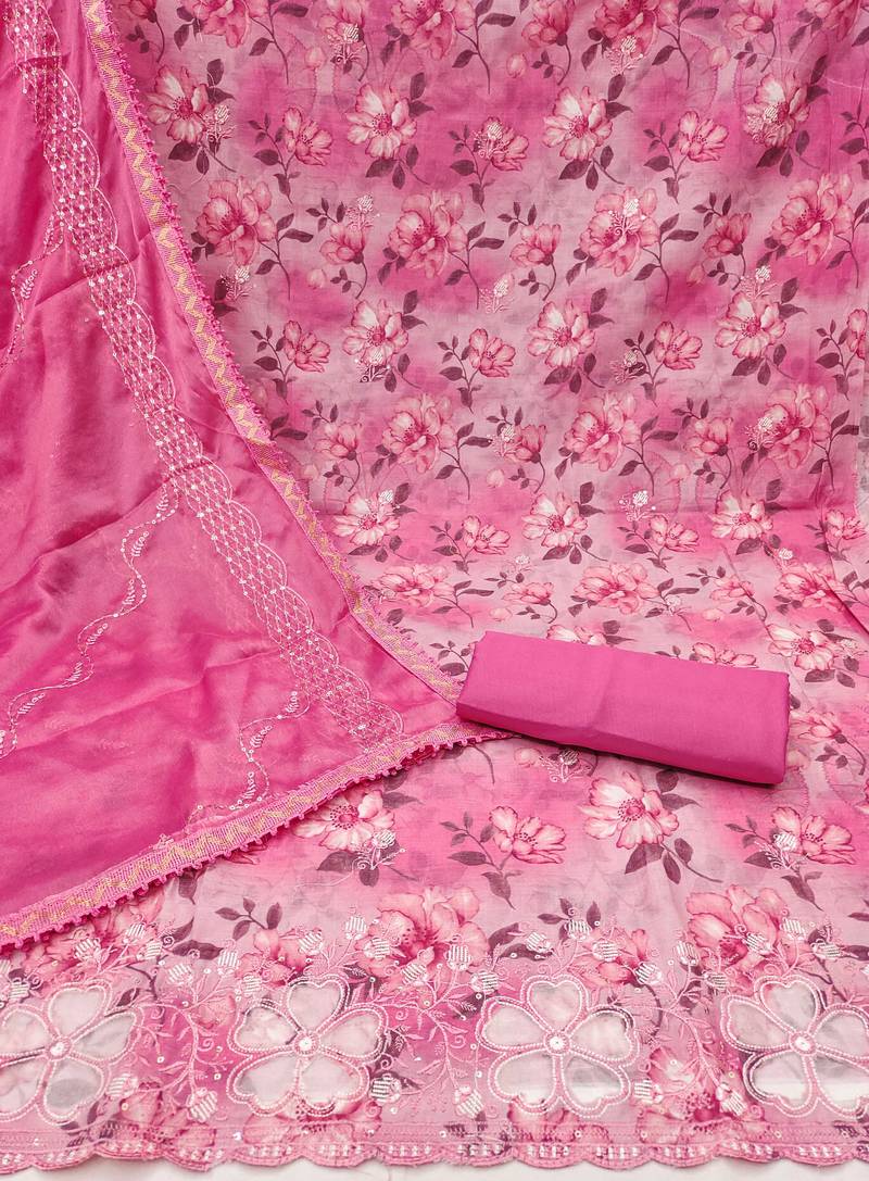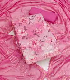 Pink cotton embroidered dress material unstitched