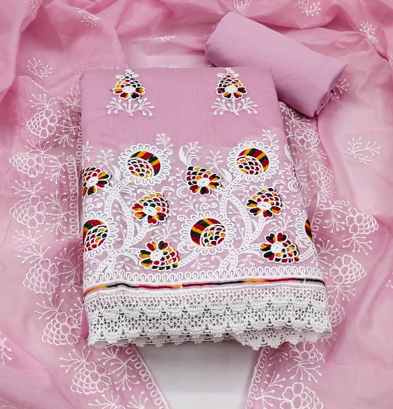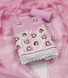 Pink cotton embroidered dress material unstitched