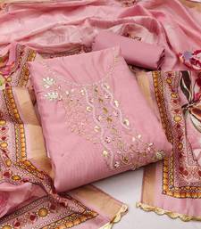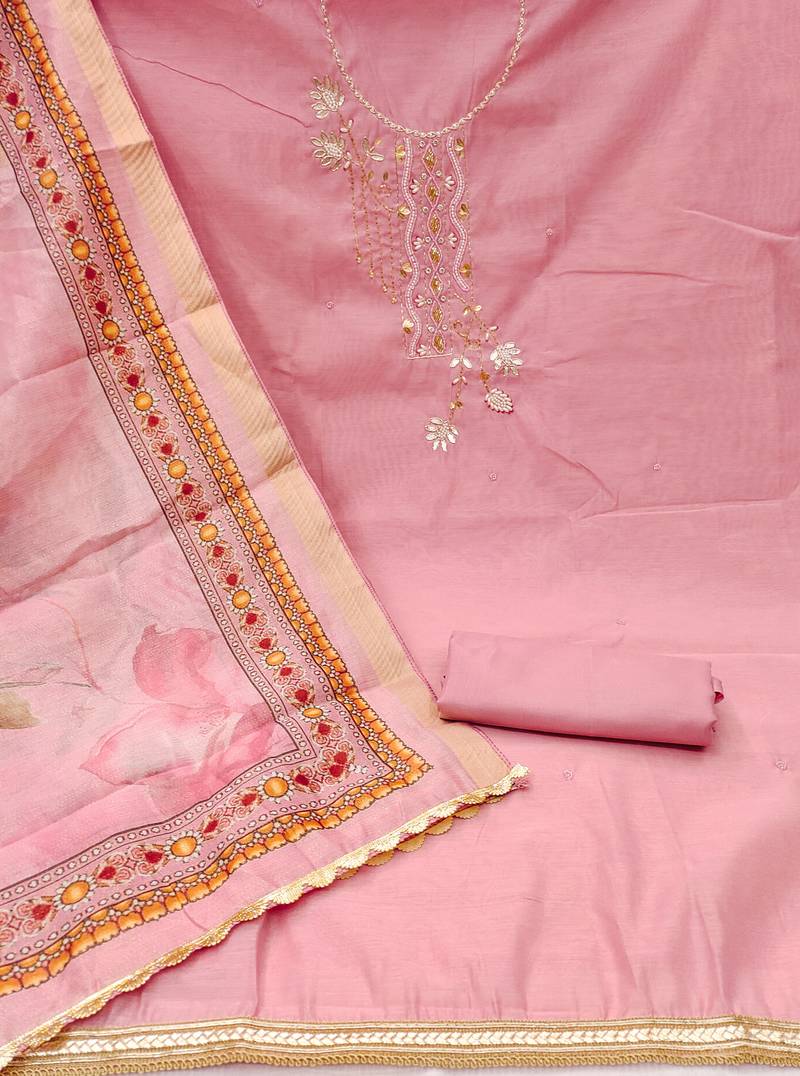 Pink cotton embroidered dress material unstitched