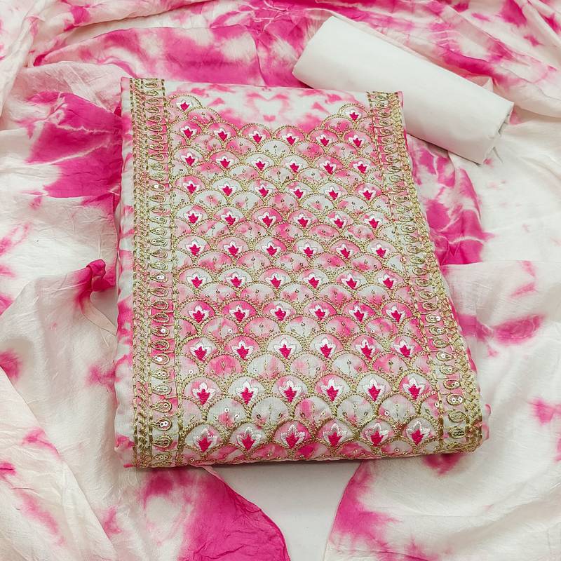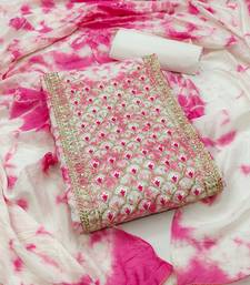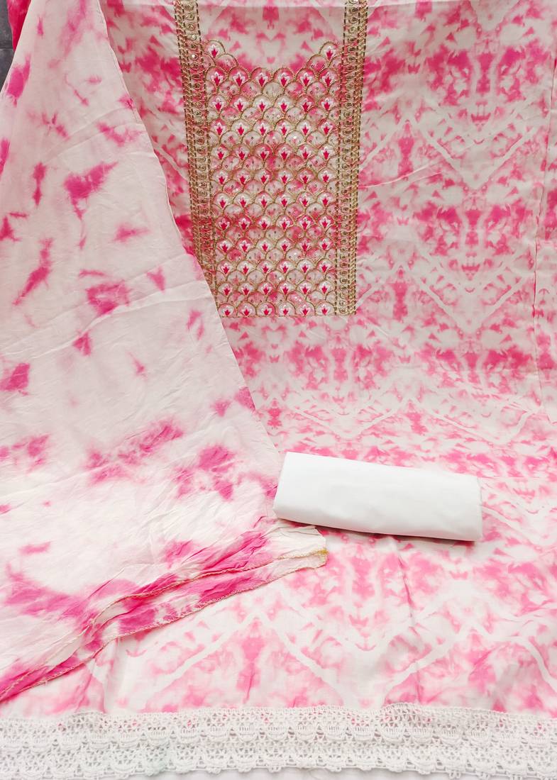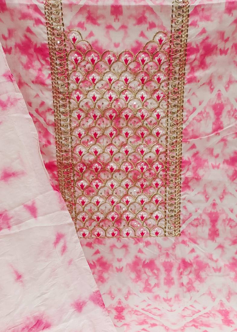 Pink cotton embroidered dress material unstitched