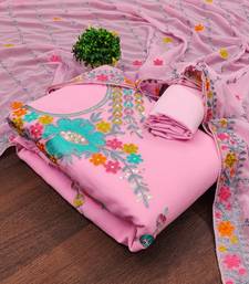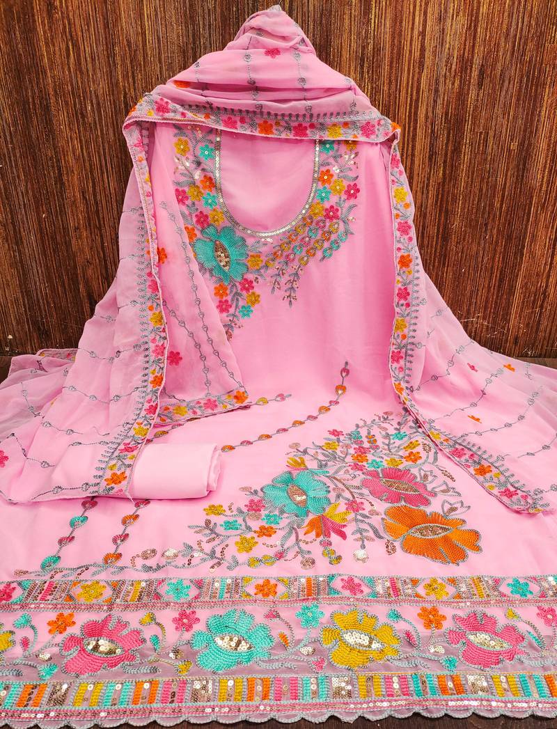 Pink georgette embroidered dress material unstitched