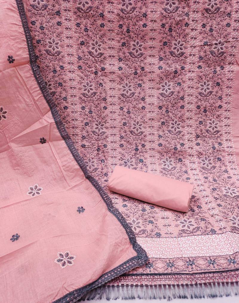 | Product Description | Heavy Thread Embroidery With Embroidered Dupatta Straight Style 1.80 Mtr Unstitched Dress Material Top Of Pink Colour Cotton Fabric Suggestable Quarter Style Sleeves And Round Style Neck Also Including 2.00 Mtr Chudidar Style Bottom Piece Material Of Pink Colour Cotton Fabric With 2.00 Mtr Dupatta Of Pink Colour Cotton Fabric |