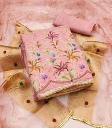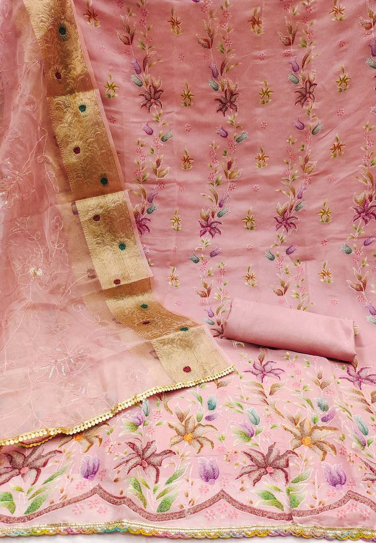 Pink organza embroidered dress material unstitched