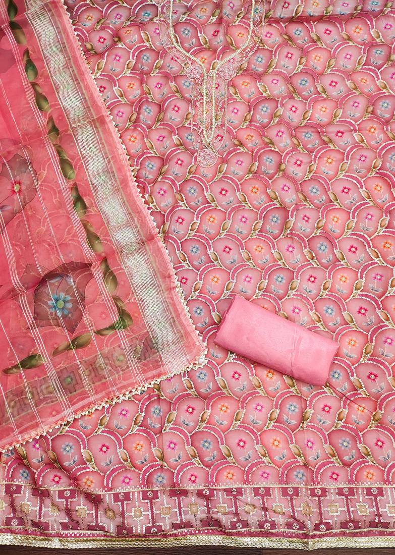 | Product Name | Pink Organza Embroidered Dress Material | |